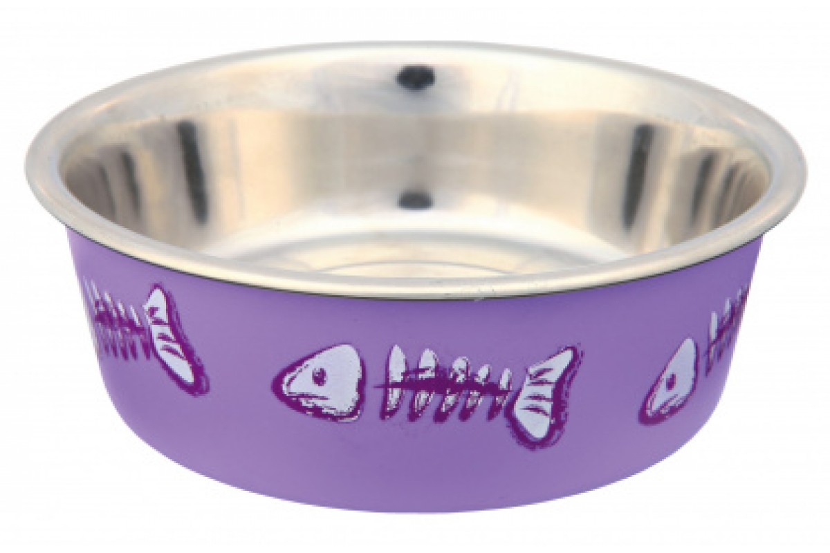 - Металлическая миска для котов с пластиковым покрытием.