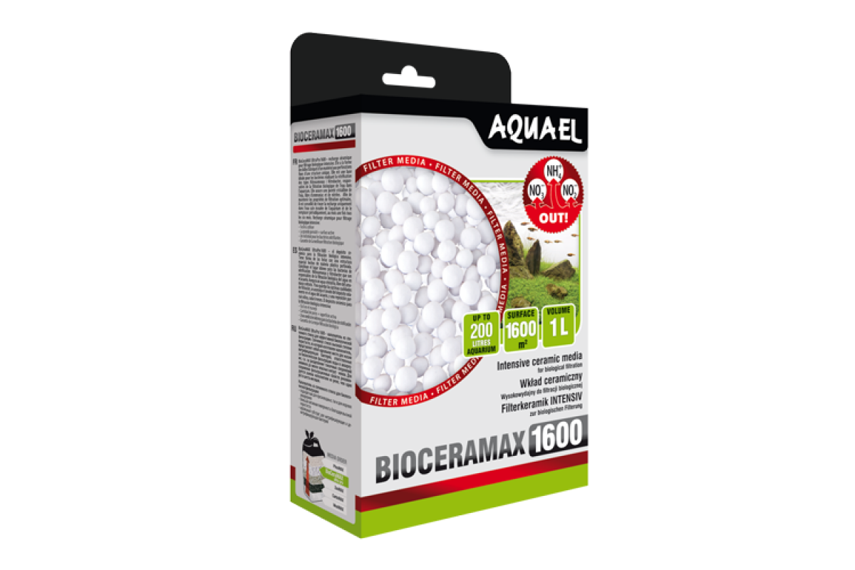 <p>BioCeraMAX UltraPro 1600 предназначен для нейтрализации аммиака и нитритов, которые содержатся в воде и вредны для рыб.</p> <p>Как действует BioCeraMAX UltraPro 1600?<br>На пористой поверхности шариков BioCeraMAX UltraPro 1600 со временем оседают колонии полезных нитрифицирующих бактерий Nitrosomonas и Nitrobacter. Они перерабатывают токсичные для рыб вещества: аммиак (Nitrosomonas) и нитриты (Nitrobacter). Нитрифицирующие бактерии окисляют их в нитраты, которые гораздо безопаснее для обитателей аквариумов.</p> <p>Где и когда используется BioCeraMAX UltraPro 1600?<br>BioCeraMAX UltraPro 1600 идеально подходит в качестве биологического наполнителя для канистровых фильтров, переливных фильтров, сампов, фильтрационных колонок. Может быть использован как в пресноводных, так и в морских аквариумах. Особенно рекомендуется для аквариумов с крупными рыбами или с большим количеством рыб.</p> <p>Как использовать BioCeraMAX UltraPro 1600?<br>BioCeraMAX UltraPro 1600 уже готов к использованию. Содержимое упаковки следует пересыпать в корзину или камеру фильтра. С целью обеспечения оптимальных результатов использования рекомендуется расположить BioCeraMAX Pro 1600 после наполнителя для механической фильтрации и перед химическим наполнителем.<br>Одна упаковка, то есть 1 литр BioCeraMAX Pro 1600 подойдет для фильтров AQUAEL: UNIMAX 150, UNIMAX 250, MIDIKANI, MINIKANI 80 и MINIKANI 120. При использовании других фильтров одна упаковка BioCeraMAX Pro 1600 рекомендуется для аквариума объёмом примерно 250 литров.</p> <p>Как долго действует BioCeraMAX UltraPro 1600?<br>Наполнитель BioCeraMAX Pro 1600 может быть использован в течение очень большого промежутка времени без замены. Однако со временем он постепенно изнашивается и крошится, что снижает его эффективность. Поэтому каждый 6–12 месяцев рекомендуется менять примерно 1/3 наполнителя на новый. <br>Во время очистки фильтра наполнитель следует промывать водой, слитой из аквариума. Не стоит использовать проточную воду — так можно вымыть из наполнителя все полезные бактерии.</p> <p></p>