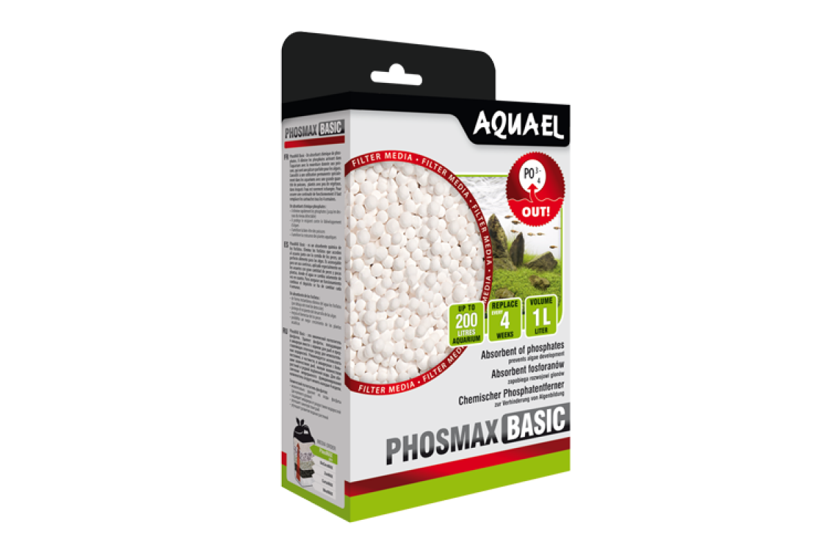 <p style="">Что такое PhosMAX Basic?<br>PhosMAX Basic это уникальный наполнитель, предназначенный для химической фильтрации в пресноводных аквариумах и в террариумных бассейнах. Имеет форму гравия и обладает очень большими впитывающими свойствами. Служит для химической абсорбции распущенных в воде фосфатов, которые являются одной из главных причин развития в аквариуме нежелательных водорослей.<br>Как действует PhosMAX Basic?<br>Уникальные химические соединения, использованные в PhosMAX Basic, обладают прекрасными сорбционными свойствами. Они поглощают из воды растворённые в ней фосфат-ионы, тем самым эффективно предотвращают развитие водорослей.<br>Где и когда используется PhosMAX Basic?<br>PhosMAX Basic отлично подходит в качестве фильтрующего слоя для канистровых фильтров, переливных фильтров и внутренних фильтров со сменным наполнитель (например, TURBOFILTER), а также для сампов и фильтрационных колонок. Особенно рекомендуется для аквариумов с большим количеством рыб, питающихся кормом животного происхождения (например, большие цихлиды, сомы), а также лишённых растений, являющихся натуральными абсорбентами фосфата. Использование PhosMAX Basic позволяет ограничить объём и частоту подмены воды, а также предотвращает рост водорослей в аквариуме.<br>Одна упаковка PhosMAX Basic – 1 литр, обеспечивает фильтрацию в примерно 200 литровом аквариуме в течение почти 30 дней.<br>Как использовать PhosMAX Basic?<br>PhosMAX Basic сразу готов к использованию и не требует промывки или каких-либо других дополнительных действий. Содержимое упаковки следует разместить в корзине или камере фильтра. С целью обеспечения оптимальных результатов использования рекомендуется расположить наполнитель PhosMAX Basic за наполнителями для механической и биологической фильтрации.<br>Как долго действует PhosMAX Basic?<br>Способ действия наполнителя PhosMAX Basic (сорбция) является причиной того, что он подвергается постепенному заполнению и израсходованию. С целью сохранения оптимальных фильтрационных свойств необходимо менять его не реже, чем каждые 4 недел</p> <p></p>Характеристики