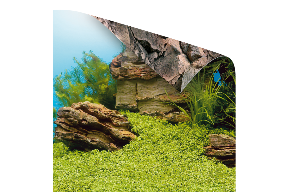 <br>Poster 1с изображением подводного ландшафта на передней стороне и скалы - на задней стороне - отличный вариант для разнообразного оформления аквариума.<p></p> <p>Водостойкая пленка просто наносится позади аквариума. Для получения максимальной объемности и яркости рекомендуется для фиксации постера применять JUWEL Poster Fix.</p>