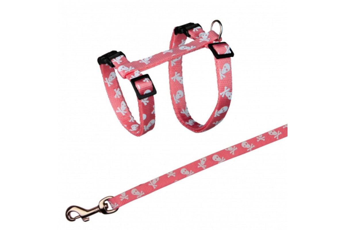 Шлейка с поводком для крупных котов "Черепа и кости" , 27-46 см 10 мм