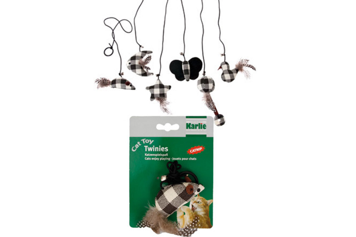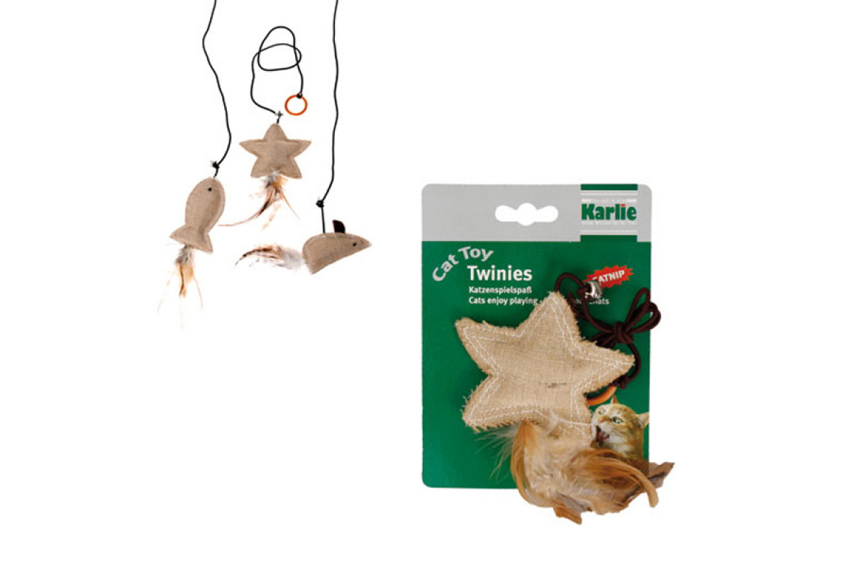 Karlie-Flamingo Twinies With Feather КАРЛИ-ФЛАМИНГО игрушки для кошек с кошачьей мятой, бежевый текстиль, 10 см.