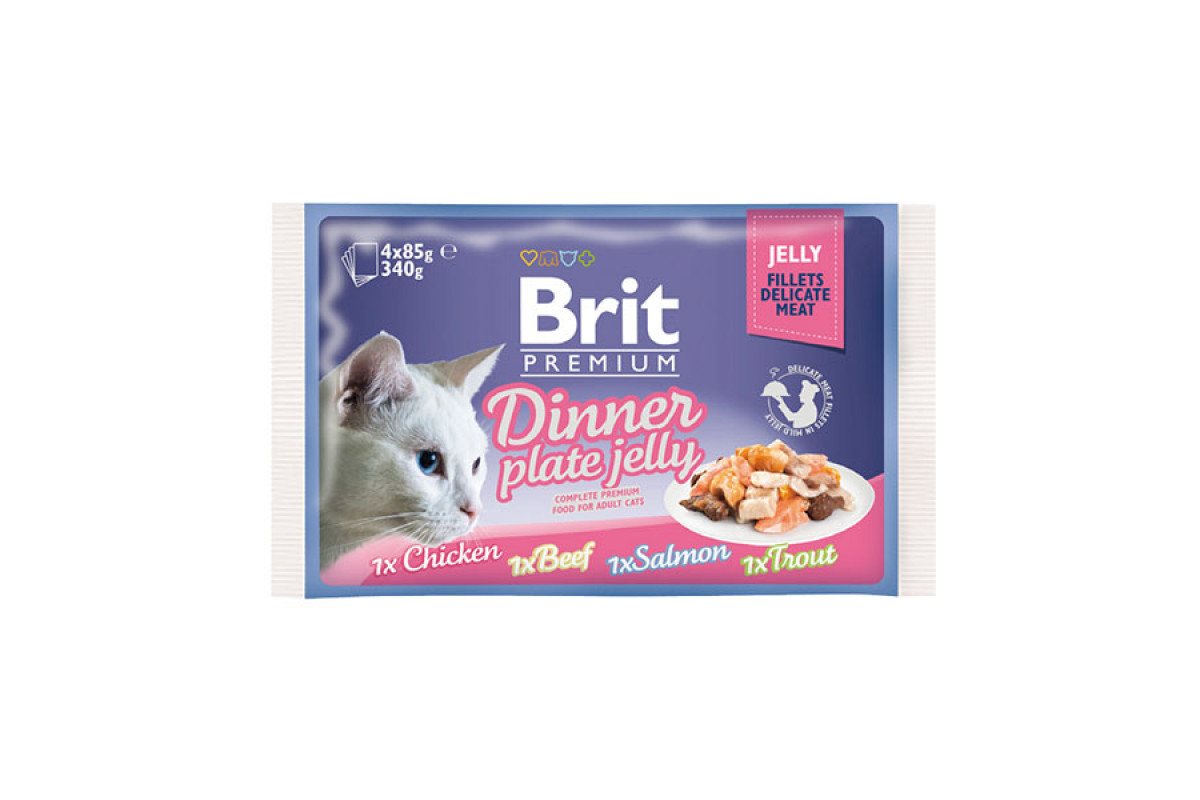 Влажный корм Brit Premium Набор паучей для кошек Dinner Plate Jelly Кусочки в желе 4x85 г