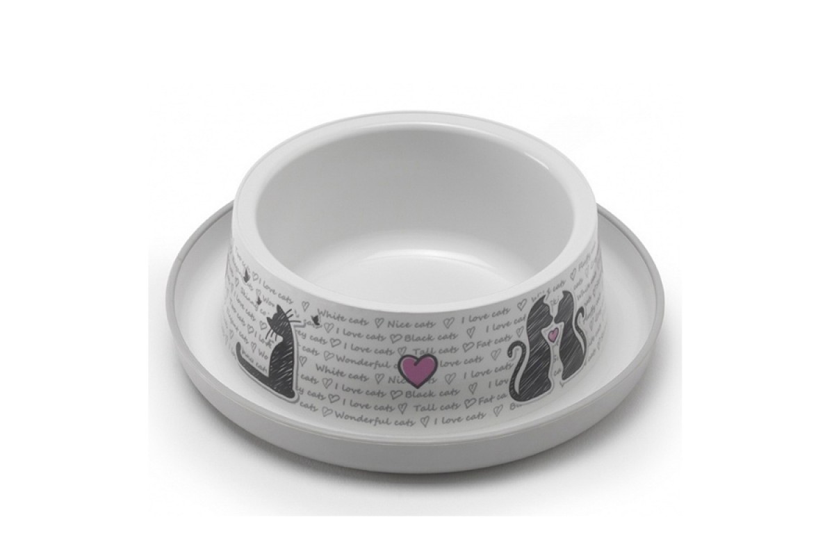 Moderna Trendy Dinner №1 Cats in Love МОДЕРНА миска для кошек, защита от муравьев, пластик, светло-серый, дизайн Влюбленные Коты, 350мл, d16смModernaНе доступно