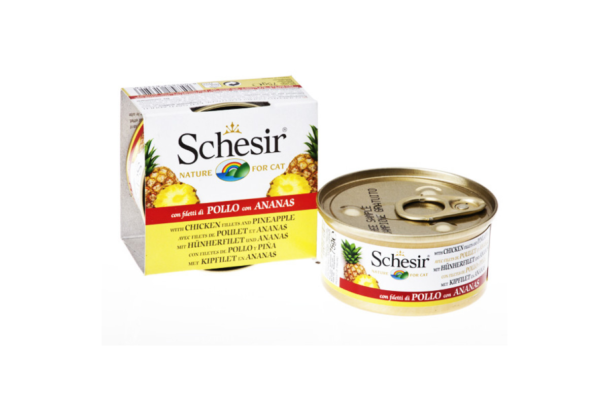 Schesir Chicken Pineapple ШЕЗИР КУРИЦА С АНАНАСОМ натуральные консервы для кошек, влажный корм филе курицы с ананасом, банка 75 г , 0.075 кг.SchesirНе доступно