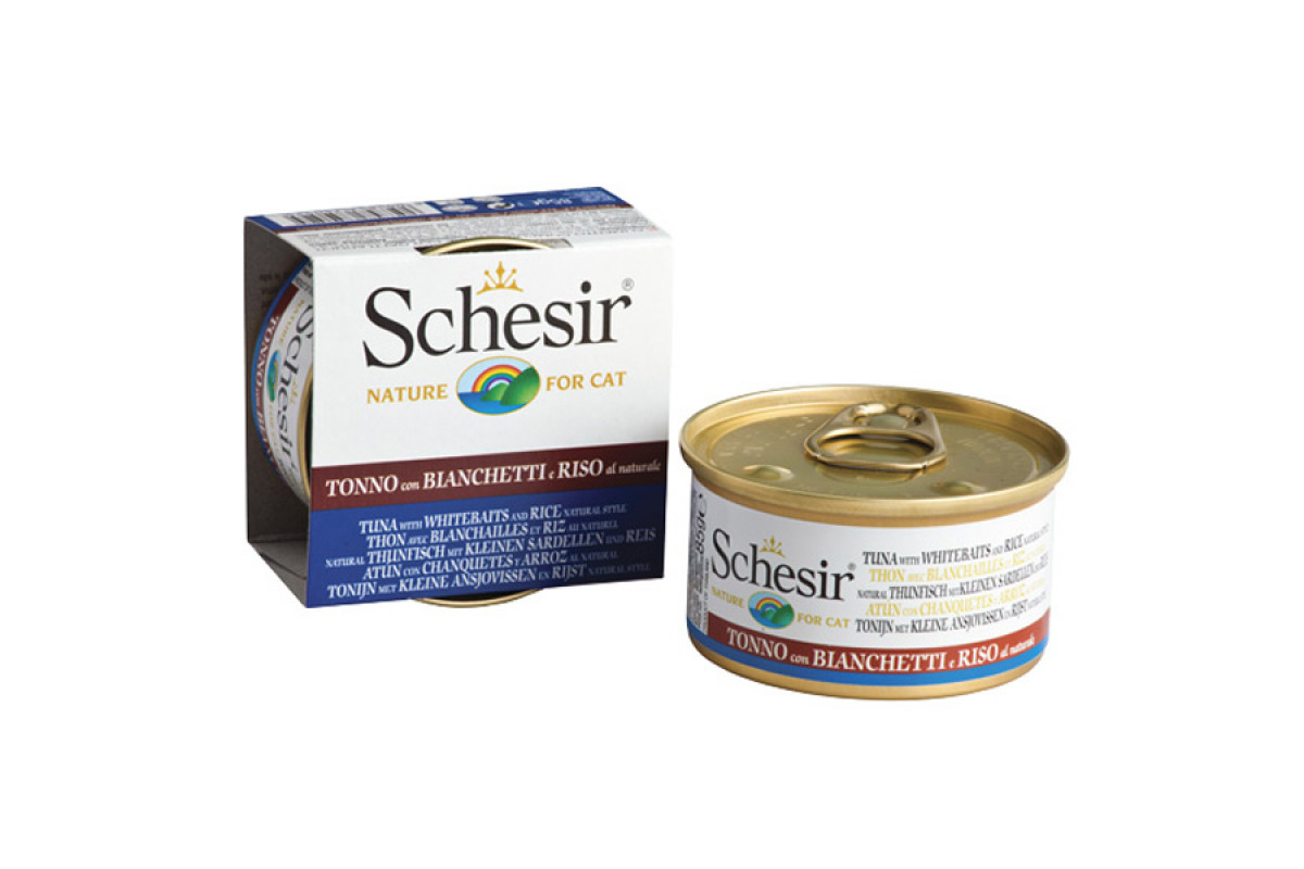 Schesir Tuna Whitebait Rice ШЕЗИР ТУНЕЦ С МАЛЬКАМИ И РИСОМ натуральные консервы для кошек, влажный корм тунец с мальками и рисом в собственному соку, банка 85 г , 0.085 кг.SchesirНе доступно
