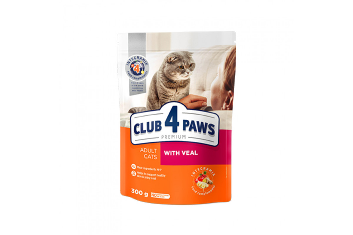 КЛУБ 4 ЛАПЫ PREMIUM полнорационный сухой корм для взрослых кошек «С телятиной» 14 кг Клуб 4 лапы Не доступно