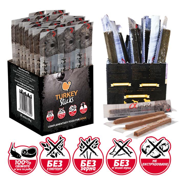 Напіввологі ласощі для собак ALPHA SPIRIT стік з індичкою (х30 шт.) 300g