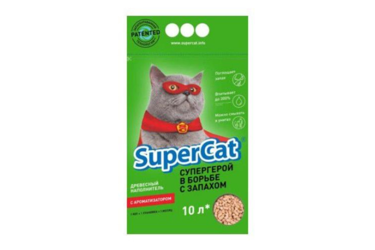 Super Cat - древесный наполнитель с ароматизатором для кошачьего туалета, 10л (3кг)