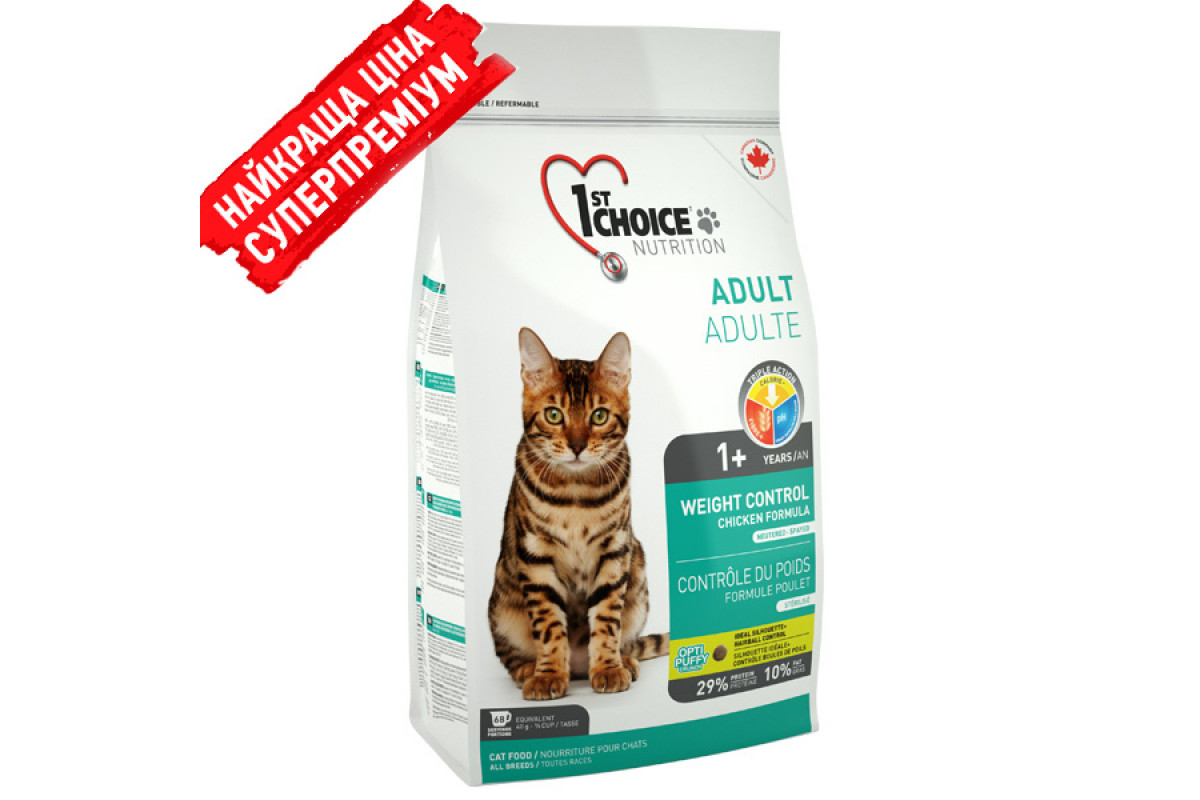 1st Choice Weight Control Adult ФЕСТ ЧОЙС КОНТРОЛЬ ВЕСА сухой супер премиум корм для кошек, склонных к полноте , 5.44 кг. 1st Choice Не доступно