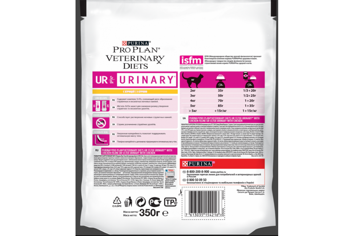 Purina Pro Plan Veterinary diets UR St/Ox Корм сухой полнорационный диетический для взрослых кошек при болезнях нижних отделов мочевыводящих путей, с курицей.