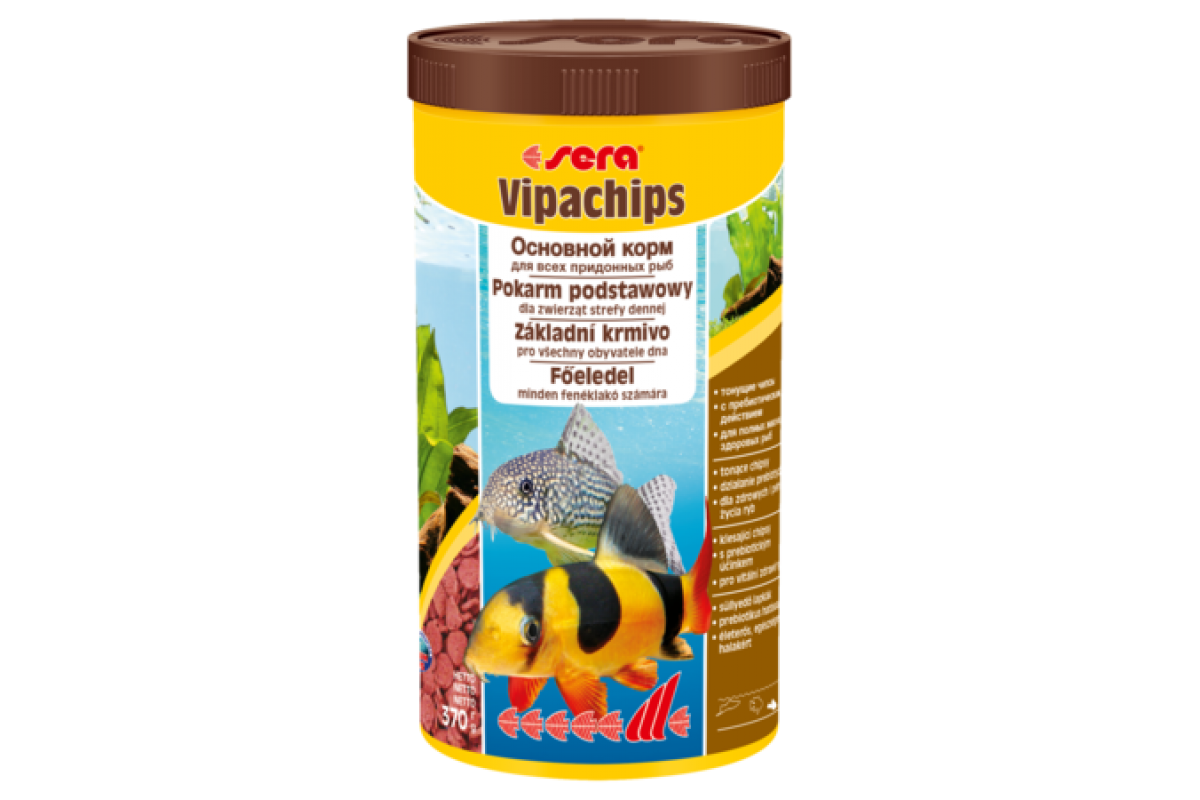 Основной корм, состоящий из тонущих чипсов для всех придонных рыб <br><p>sera випачипс – основной корм, состоящий из чипсов, произведенных путем бережной обработки сырья; предназначен для всех видов рыб, ориентированных на придонное кормление.</p> <p>Тщательно подобранные ингредиенты корма с пребиотическим действием способствуют здоровью и жизнестойкости рыб.</p> <p>Быстро тонущие чипсы становятся мягкими в воде, однако при этом надолго сохраняют свою форму, и таким образом, не загрязняя воду, дают возможность рыбам поедать корм медленно. Корм отвечает естественным особенностям питания часто пугливых, обитающих на дне ночных рыб, чем способствует их полноценному развитию и жизнестойкости.</p>