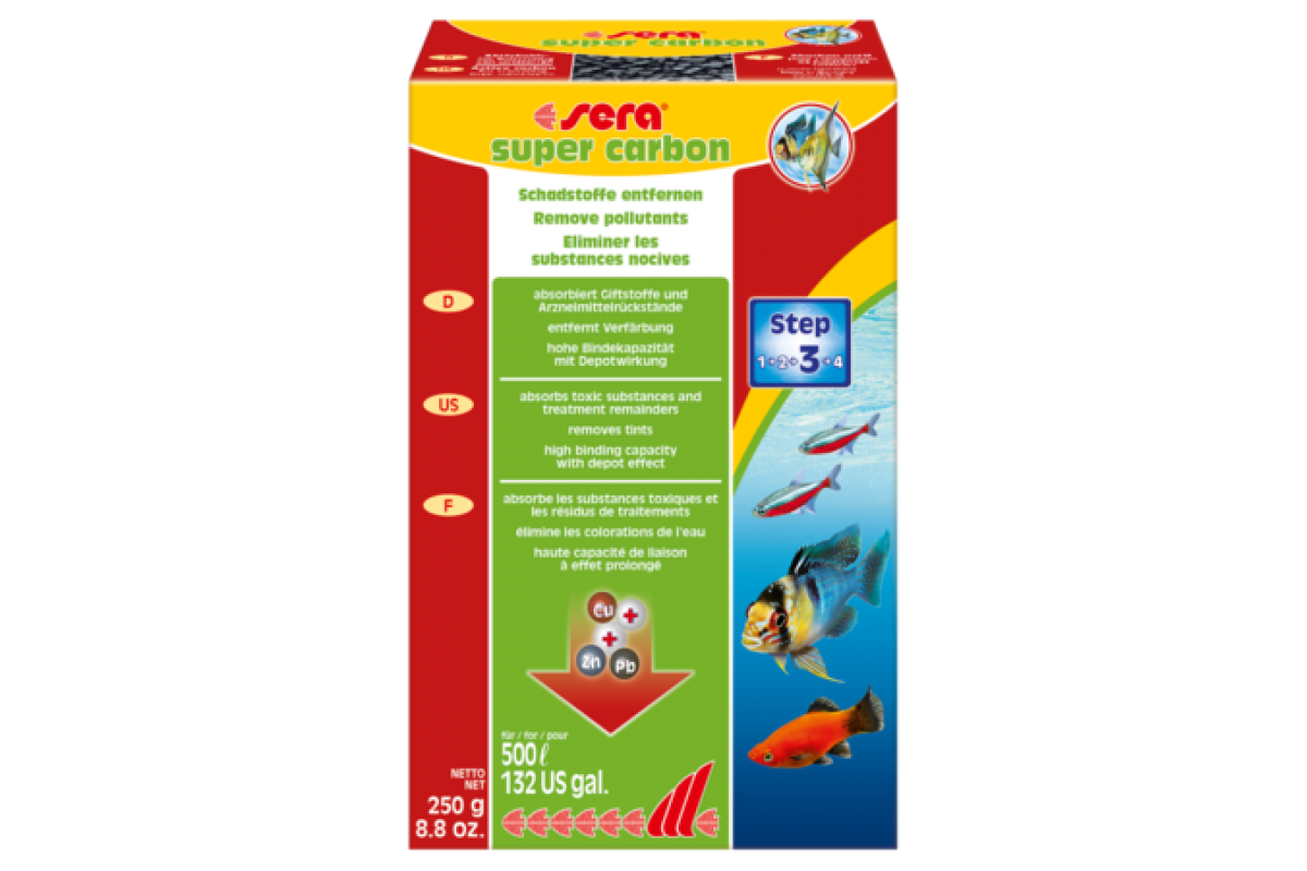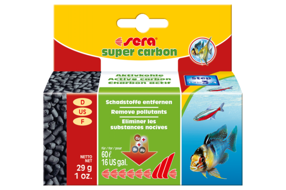 <p>Здоровая чистота</p> <ul> <li>Удаляет остатки лекарственных средств после проведения лечения</li> <li>Удаляет вредные и красящие вещества</li> <li>Не содержит фосфатов</li> <li>Эффективен в течение длительного периода</li> <li>Оказывает немедленную помощь в случае интоксикаций</li> <li>Для чистой и безопасной воды</li> </ul> <br><p>После окончания проведения лечения остатки лекарственных средств, которые больше не понадобятся, должны быть удалены из воды как можно быстрее и как можно более тщательно. Это поможет избежать излишнего загрязнения воды вредными веществами и, таким образом, не будет создана новая причина для стресса.</p> <p>Специальный активированный уголь с высокой абсорбирующей активностью sera супер карбон быстро, эффективно, без побочных эффектов и не влияя на величину pH удаляет из воды остатки лекарственных средств. Использованный активированный уголь с абсорбированными, опасными для окружающей среды, веществами может быть без проблем выброшен вместе с домашним мусором без ущерба для окружающей среды.</p> <p>sera супер карбон также замечательно подходит в случае острой интоксикации (например, при подозрении о занесении вредных веществ в процессе ремонтных работ в аквариуме и/или вместе с неподходящим декором; при передозировке лекарственных средств и т.д.), а также для удаления придающих воде нежелательную окраску веществ.</p>Характеристики