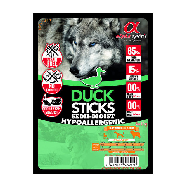 Напіввологі ласощі для собак ALPHA SPIRIT стік з качкою (x16 шт.) 160g