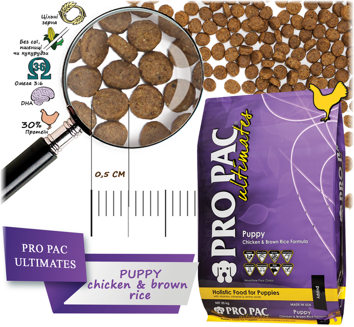 Сухий корм для цуценят Pro Pac DOG Puppy Chicken & Brown Rice Formula 20 Kg