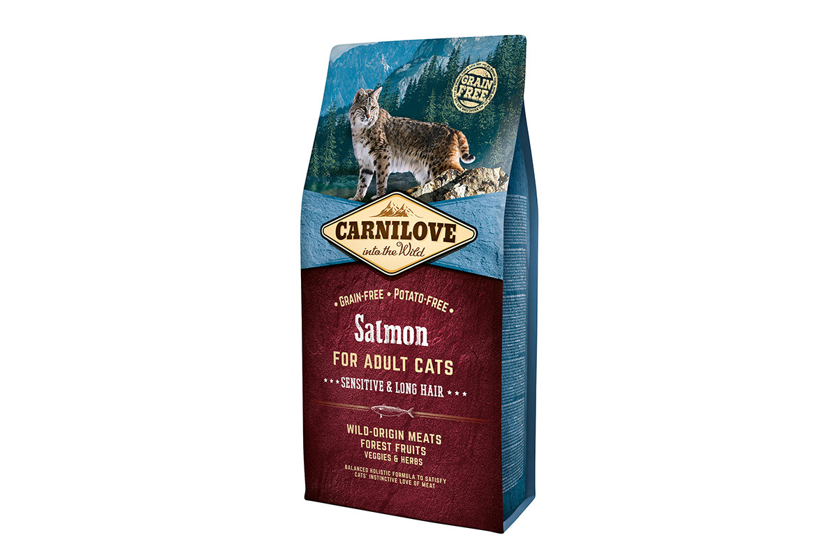 Carnilove Cat Salmon Sensitive & LongHair с лососем для взрослых кошек с чувствительным пищеварением и длинношерстных кошек 6кг Carnilove Не доступно