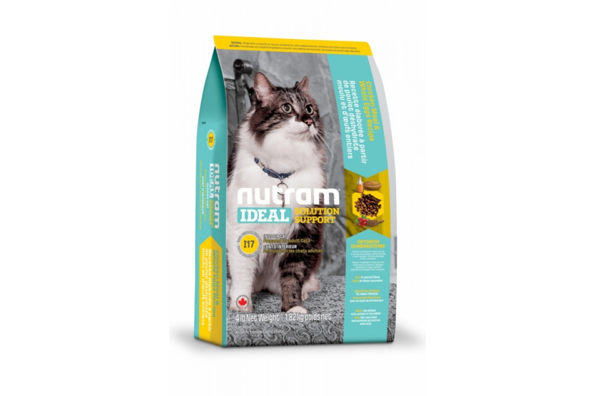 I17 Nutram Ideal Solution Support® Finicky Indoor Cat Food Для взрослых, привередлевых котов, которые содержаться преимущественно в помещении.Рецепт с курицей и цельными яйцами 20 кг Nutram Не доступно