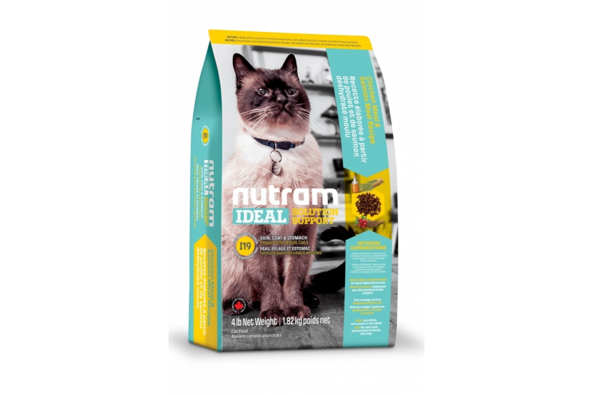 I19 Nutram Ideal Solution Support® Sensetive Coat, Skin, Stomach Cat Food Для взрослых котов с проблемами кожи, шерсти или желудка Рецепт с курицей и лососем 20 кг Nutram Не доступно