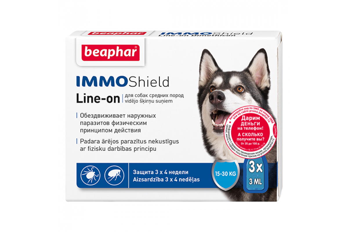 Beaphar Капли IMMO Shield Диметикон Line-on от паразитов для собак средних пород, от 1 до 15 кг Beaphar Не доступно